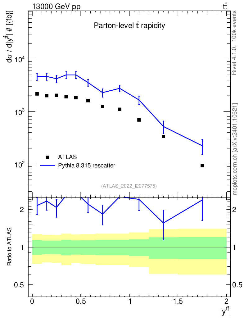 Lines: data, pythia8 8.315 rescatter |