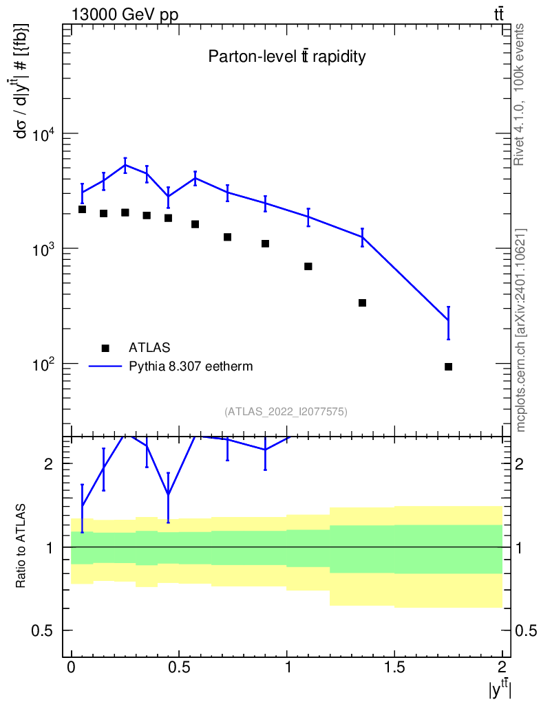 Lines: data, pythia8 8.307 eetherm |