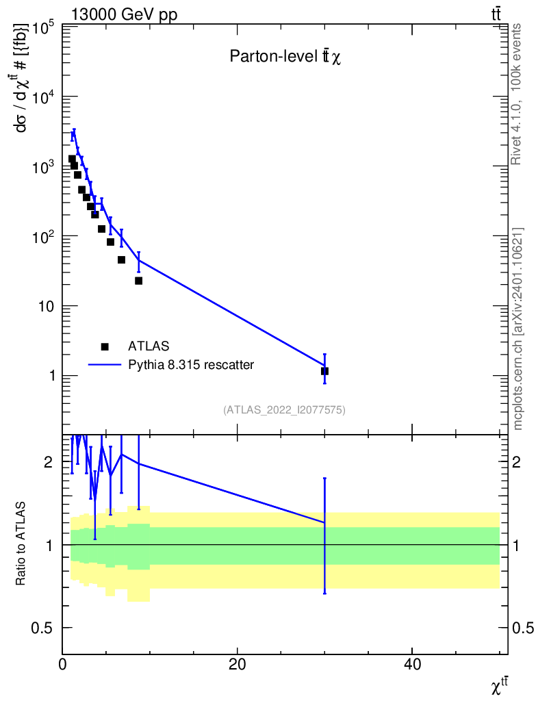 Lines: data, pythia8 8.315 rescatter |