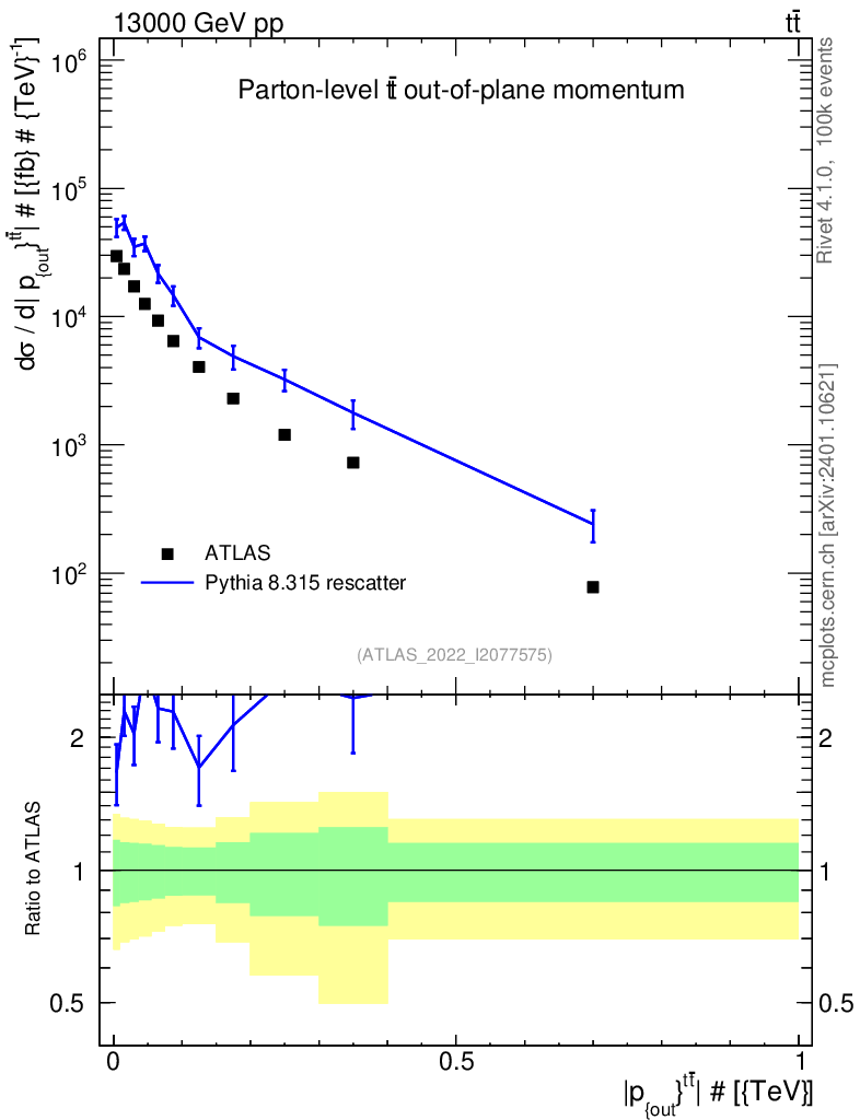 Lines: data, pythia8 8.315 rescatter |