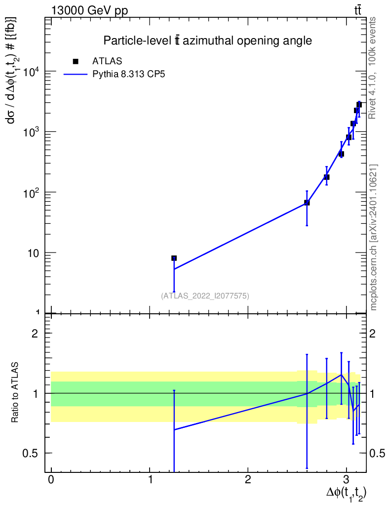 Plot of ttbar.dphi in 13000 GeV pp collisions