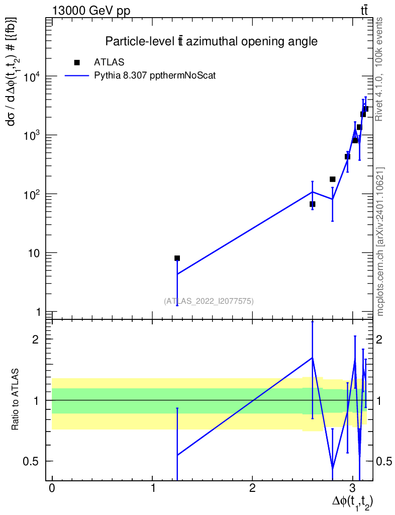 Lines: data, pythia8 8.307 ppthermNoScat |