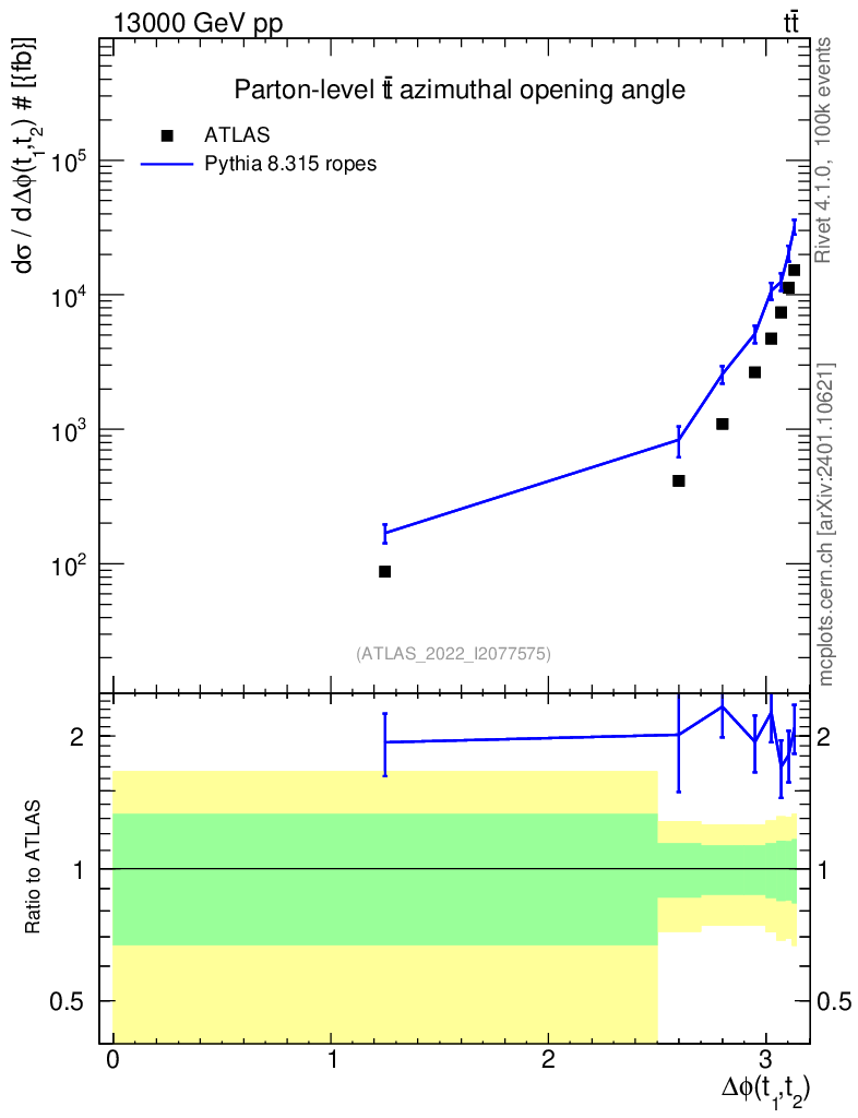 Lines: data, pythia8 8.315 ropes |