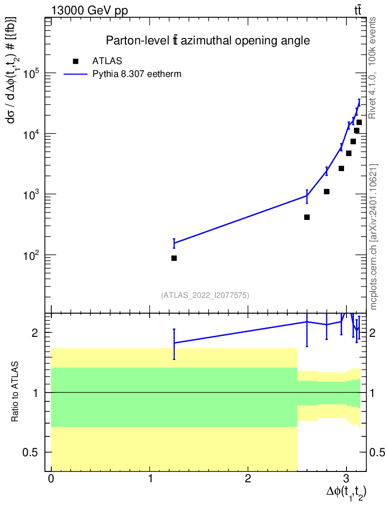 Lines: data, pythia8 8.307 eetherm |