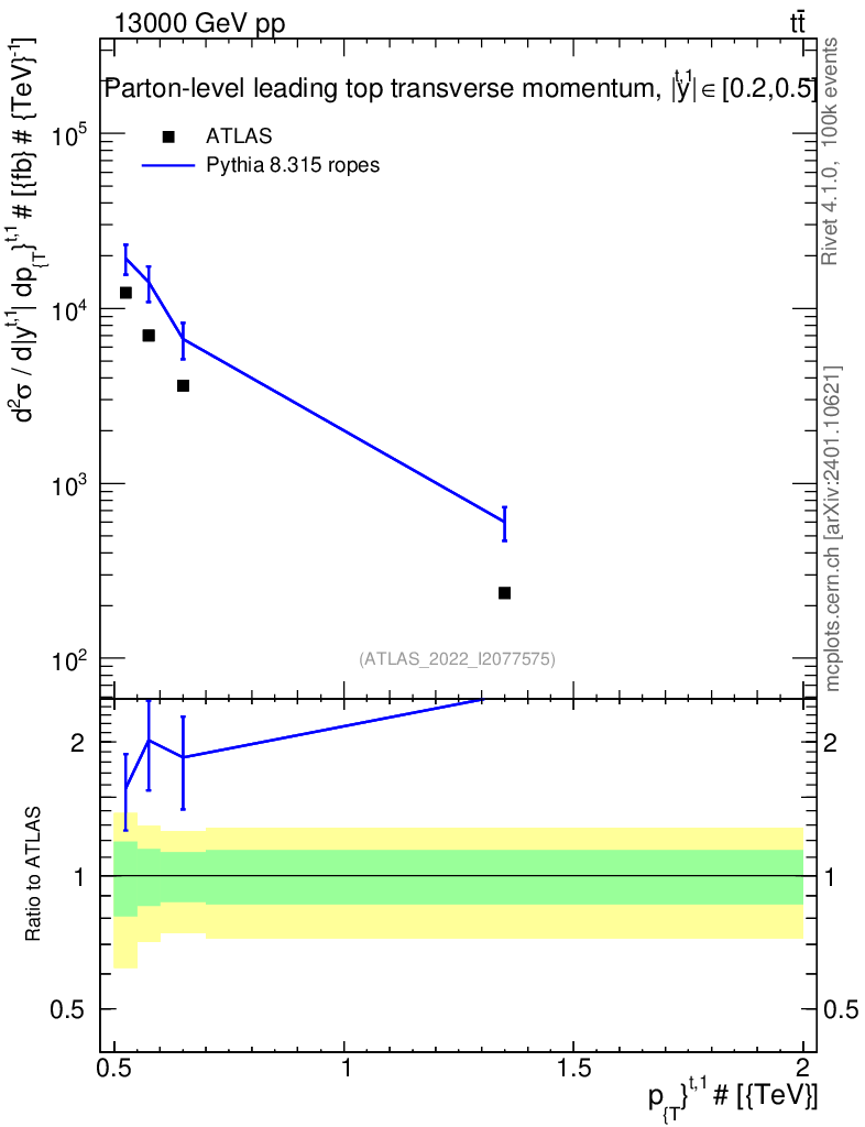 Lines: data, pythia8 8.315 ropes |