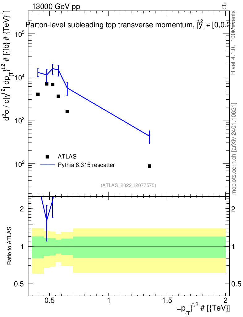 Lines: data, pythia8 8.315 rescatter |