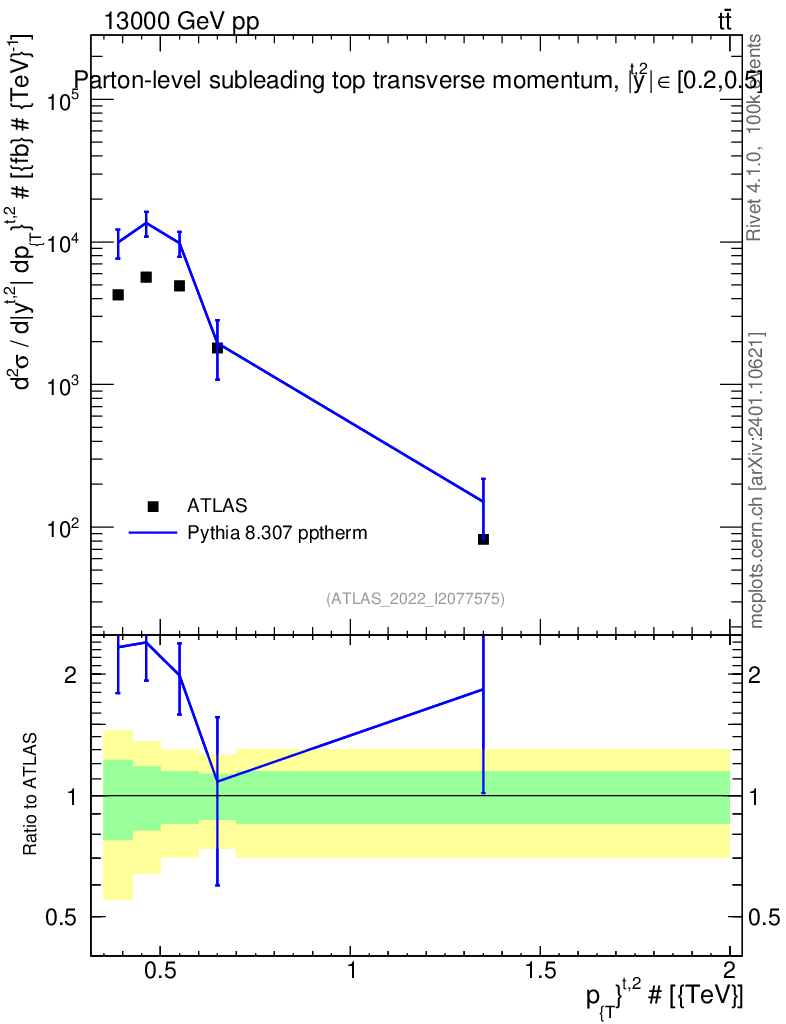 Lines: data, pythia8 8.307 pptherm |
