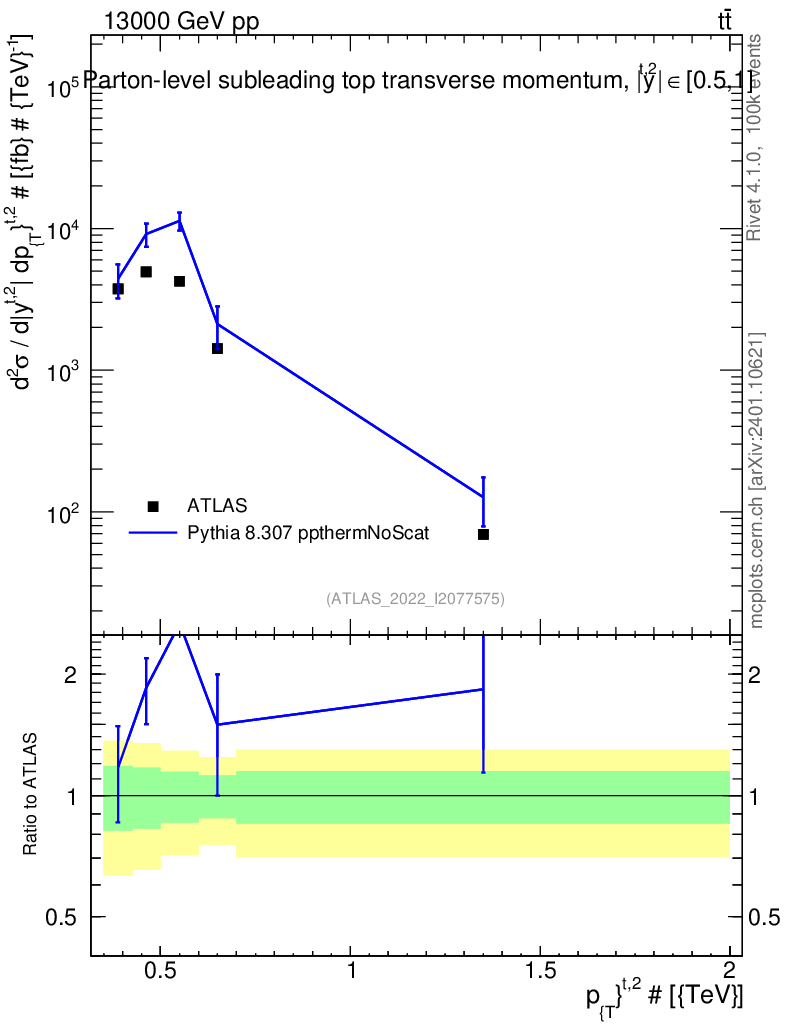 Lines: data, pythia8 8.307 ppthermNoScat |