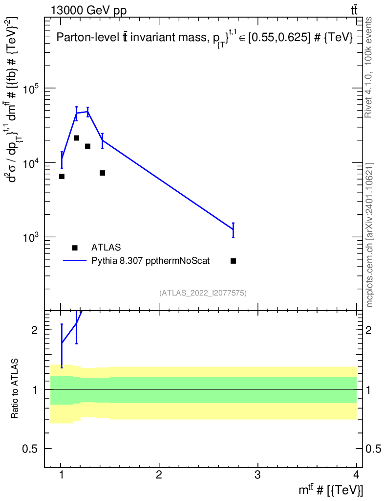 Lines: data, pythia8 8.307 ppthermNoScat |