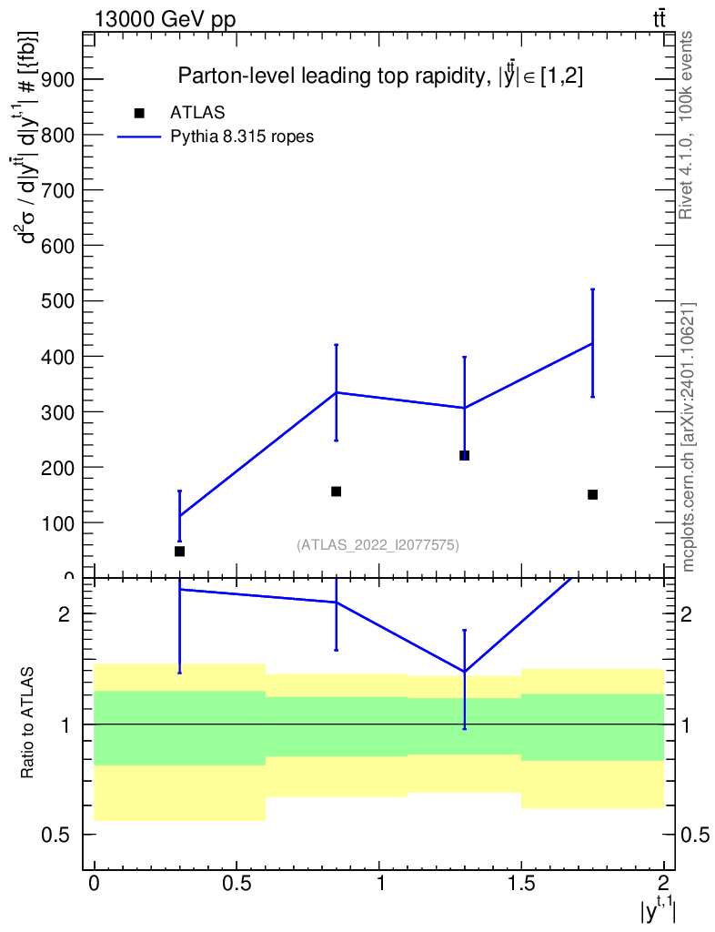 Lines: data, pythia8 8.315 ropes |