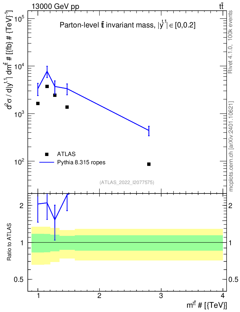 Lines: data, pythia8 8.315 ropes |