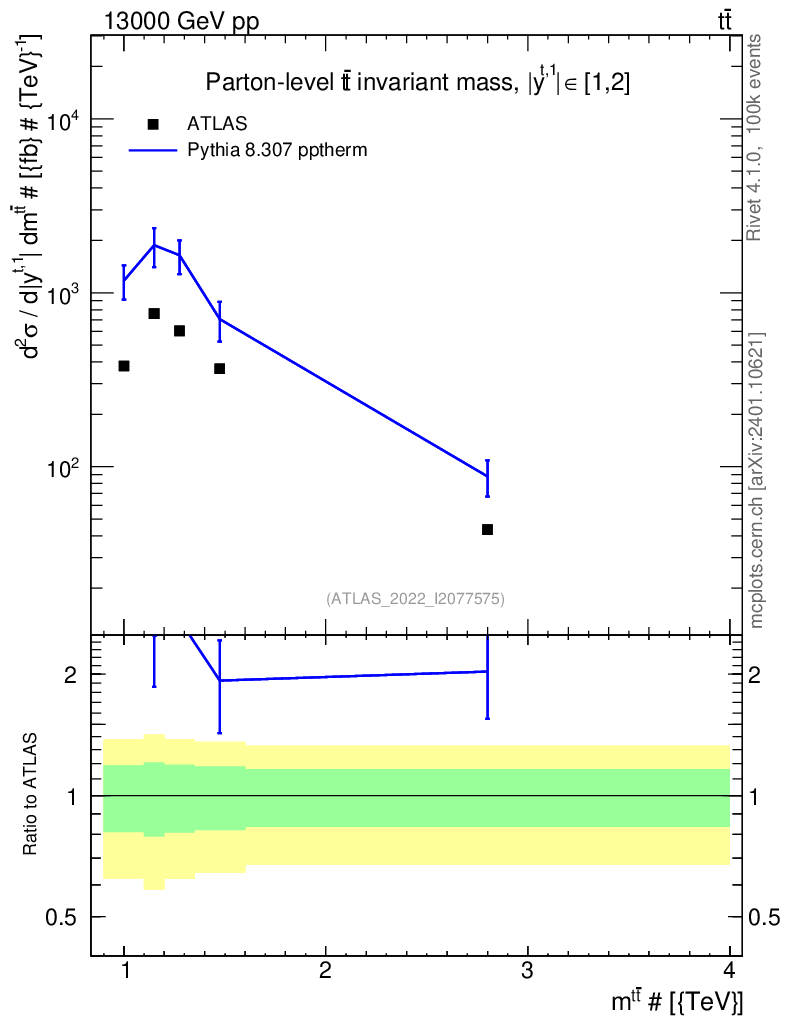 Lines: data, pythia8 8.307 pptherm |