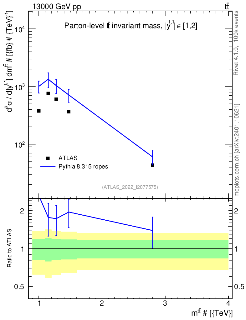Lines: data, pythia8 8.315 ropes |