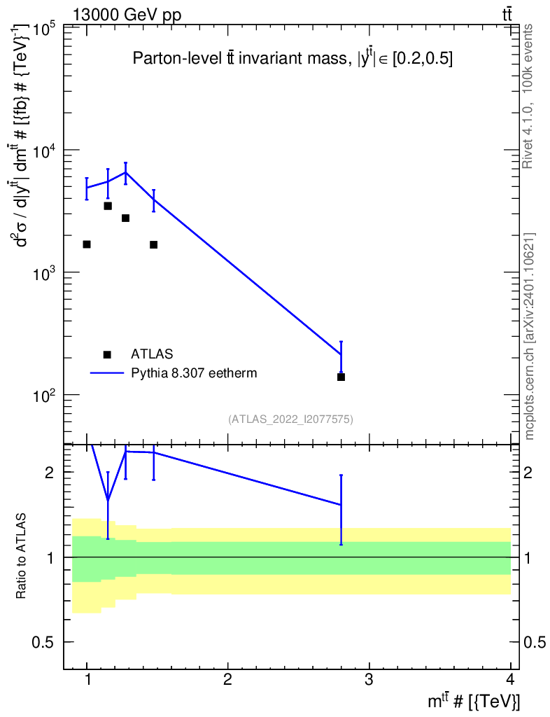Lines: data, pythia8 8.307 eetherm |