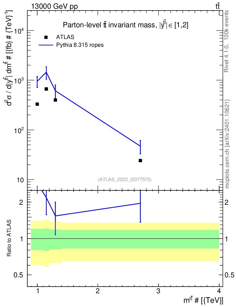 Lines: data, pythia8 8.315 ropes |