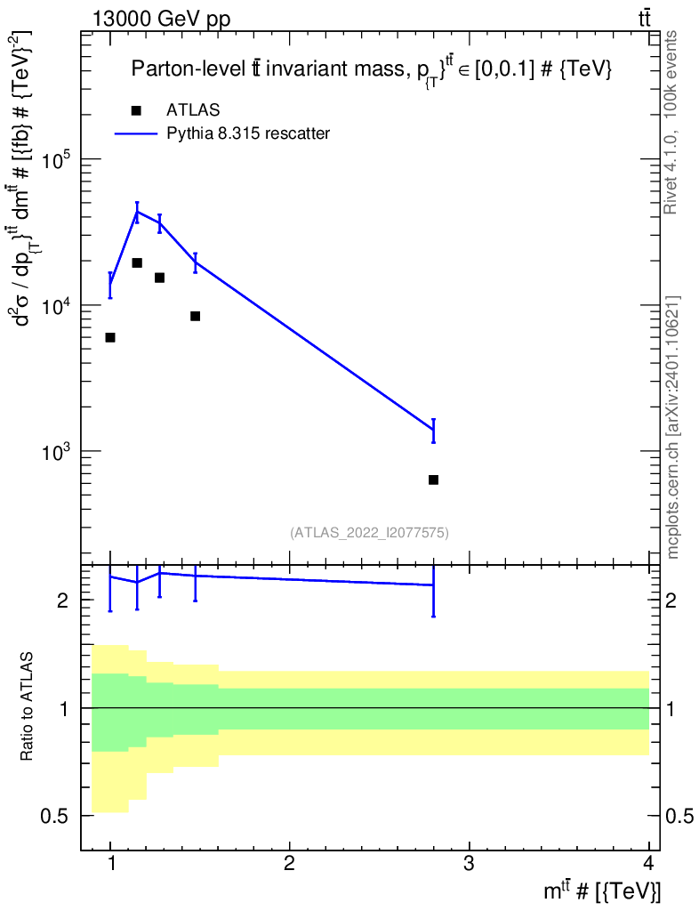 Lines: data, pythia8 8.315 rescatter |