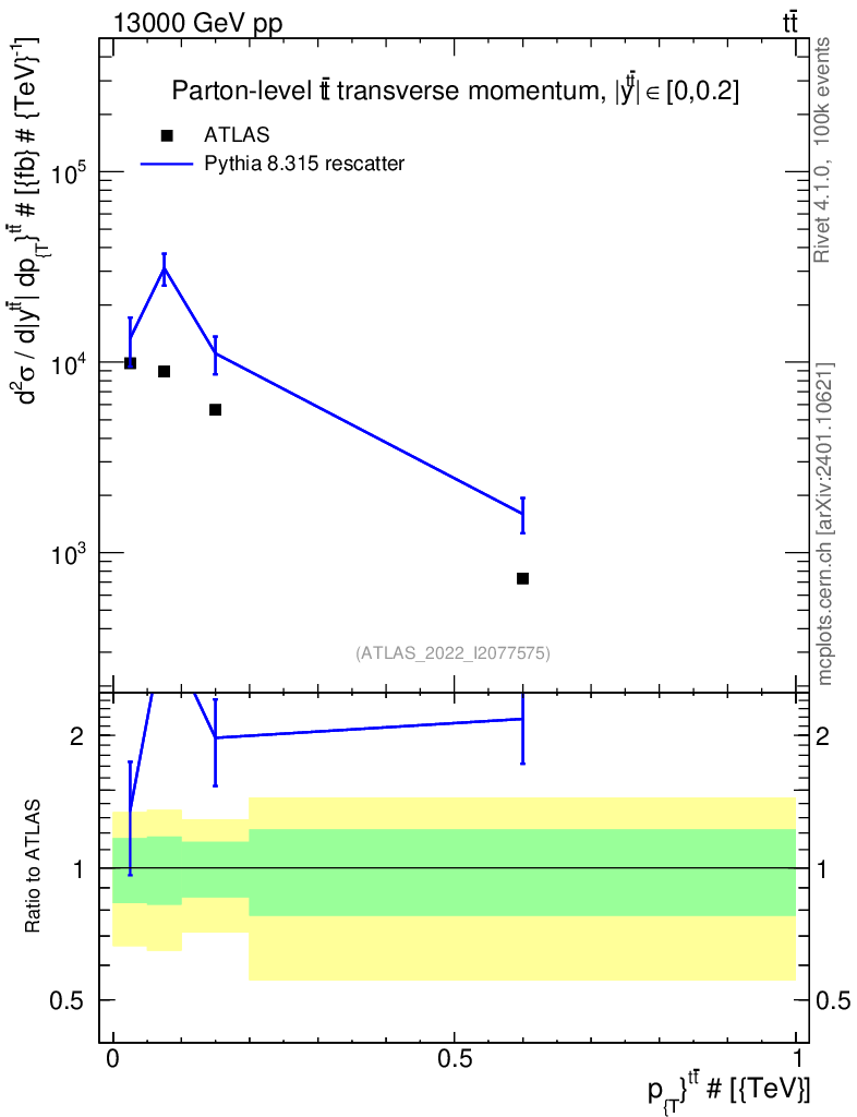 Lines: data, pythia8 8.315 rescatter |
