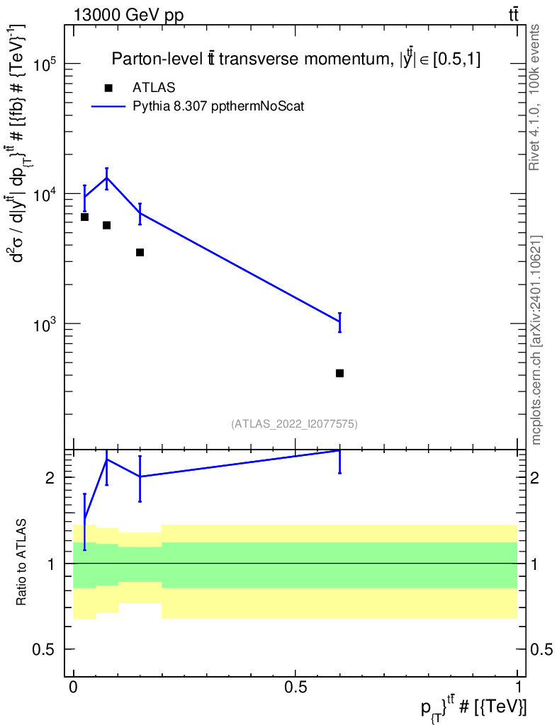 Lines: data, pythia8 8.307 ppthermNoScat |