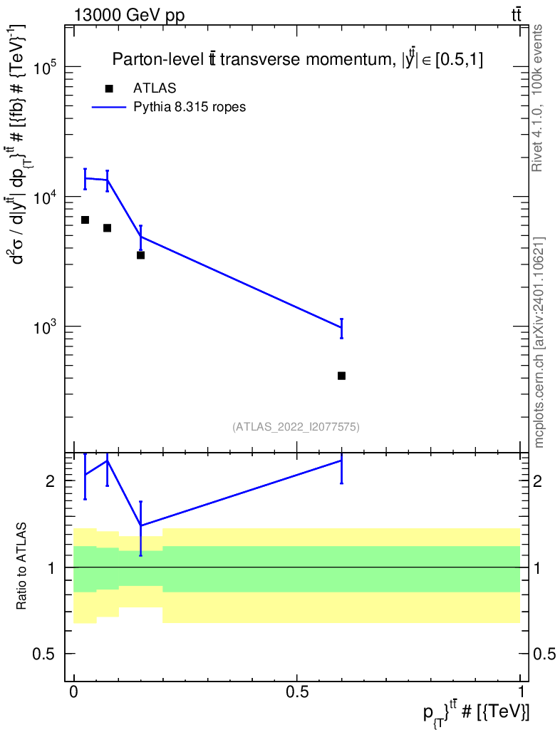 Lines: data, pythia8 8.315 ropes |