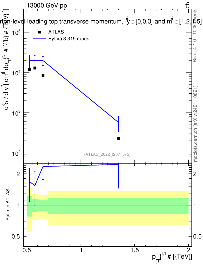 Lines: data, pythia8 8.315 ropes |