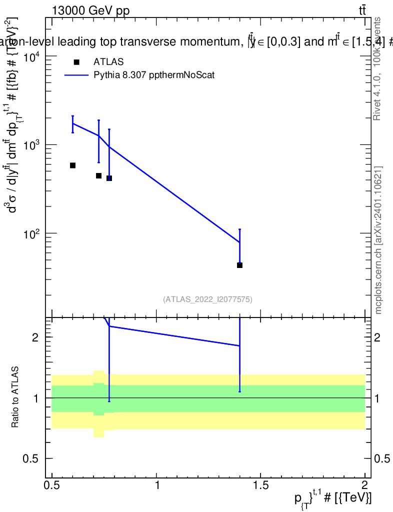 Lines: data, pythia8 8.307 ppthermNoScat |