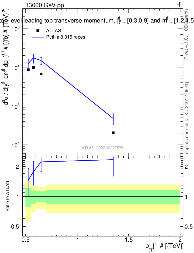Lines: data, pythia8 8.315 ropes |