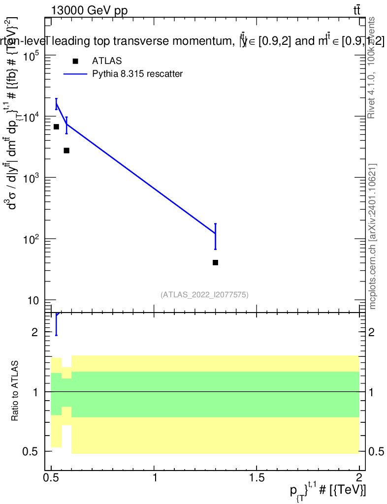 Lines: data, pythia8 8.315 rescatter |