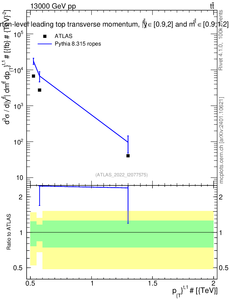 Lines: data, pythia8 8.315 ropes |