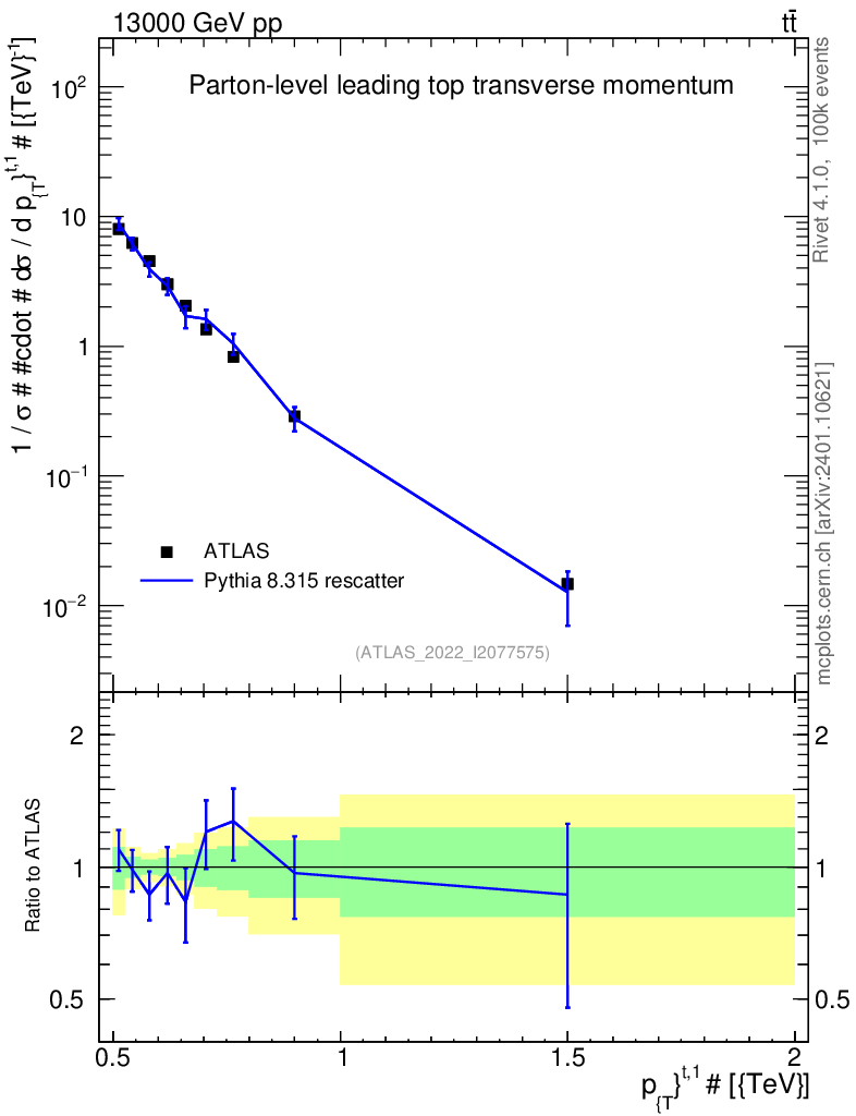 Lines: data, pythia8 8.315 rescatter |