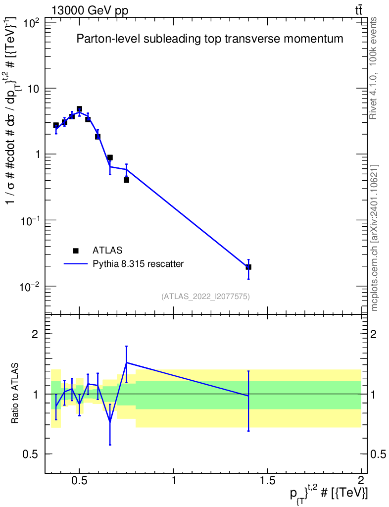 Lines: data, pythia8 8.315 rescatter |