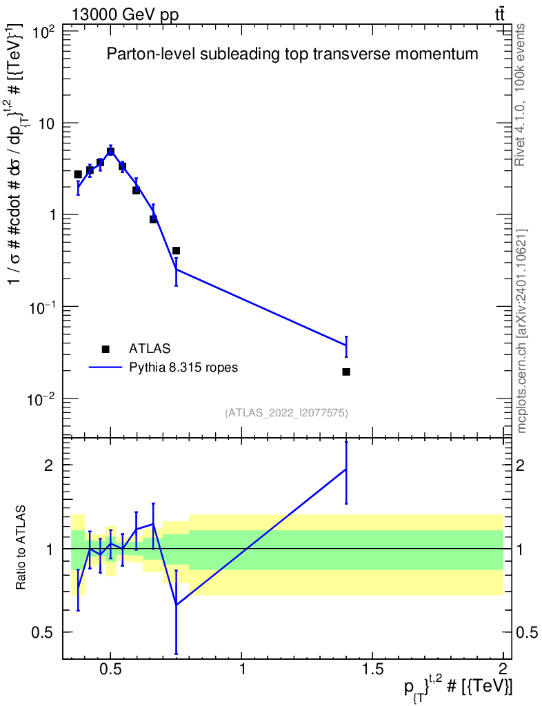 Lines: data, pythia8 8.315 ropes |