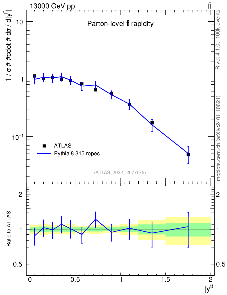 Lines: data, pythia8 8.315 ropes |