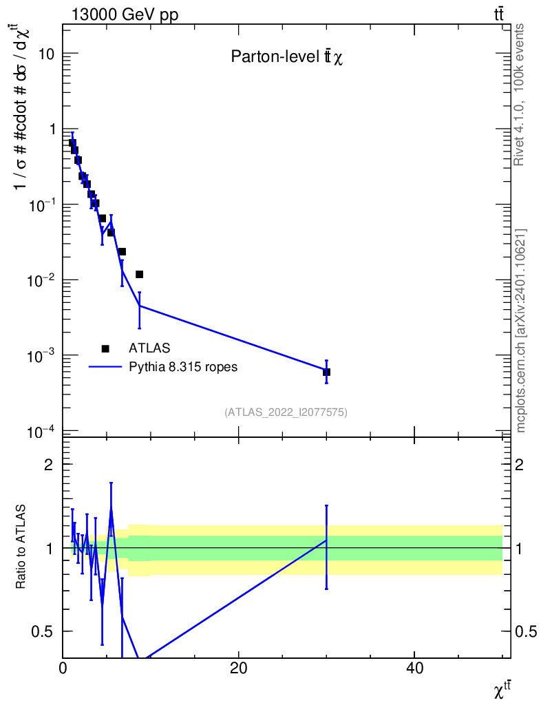 Lines: data, pythia8 8.315 ropes |