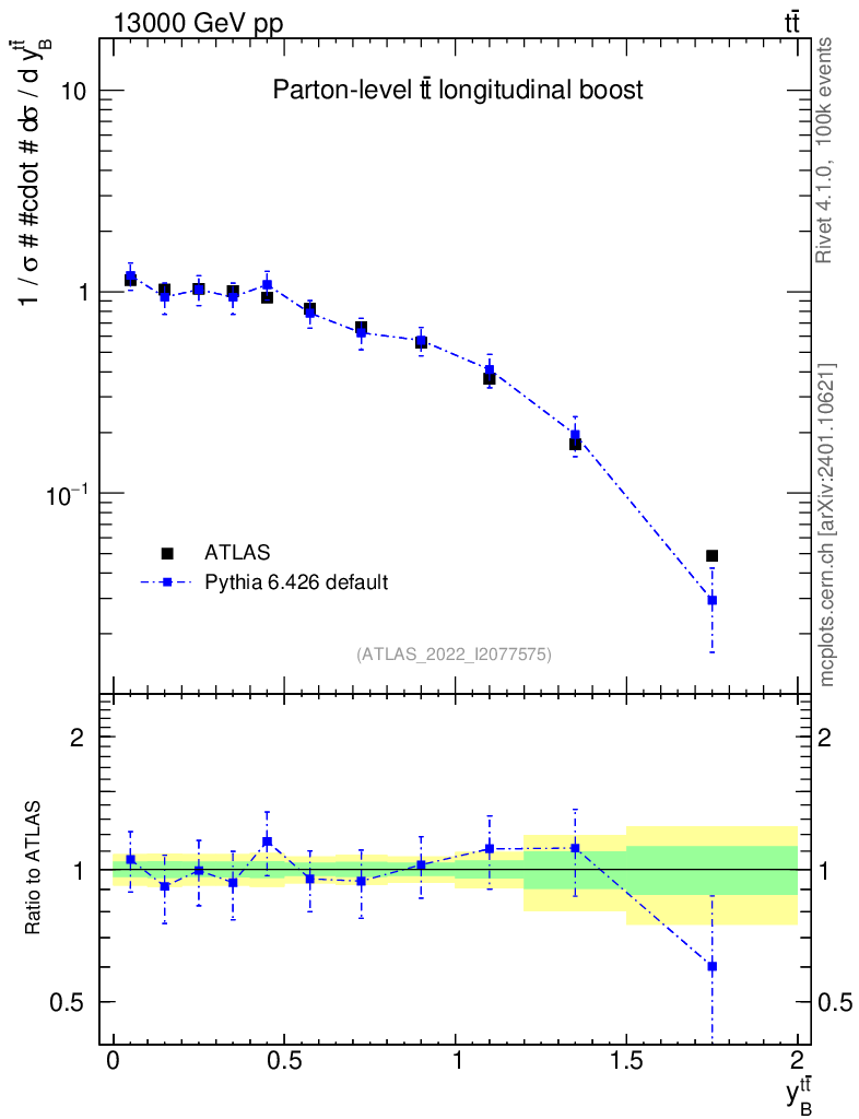 Plot of ttbar.yboost in 13000 GeV pp collisions
