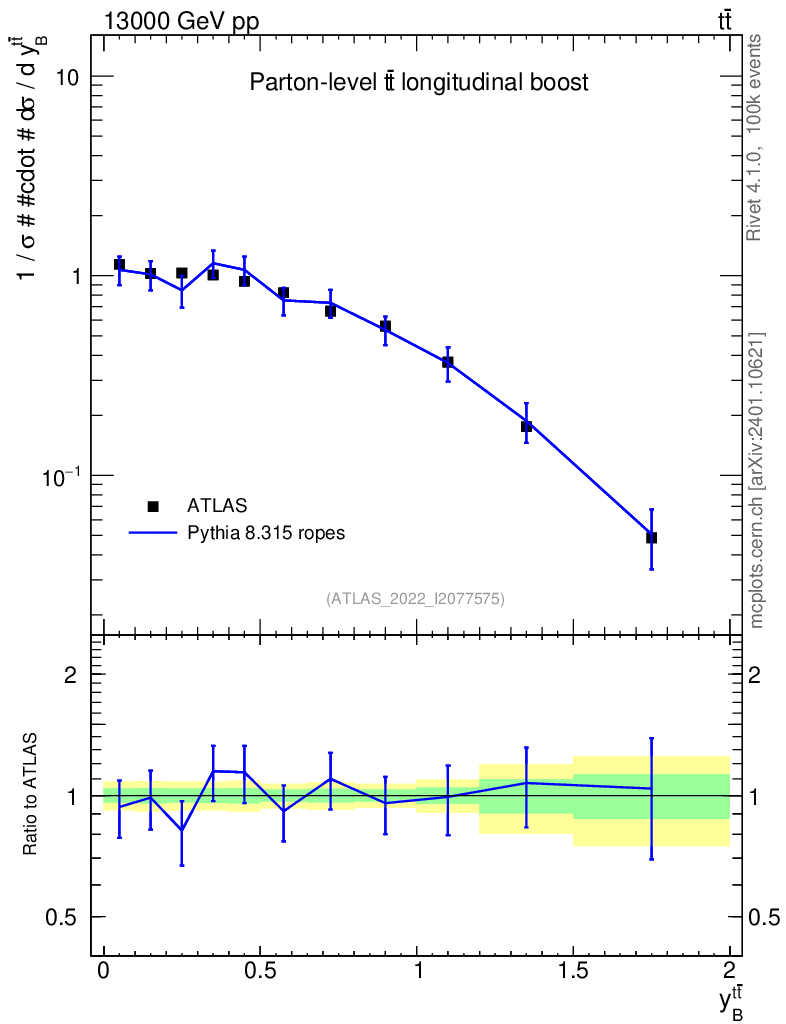 Lines: data, pythia8 8.315 ropes |