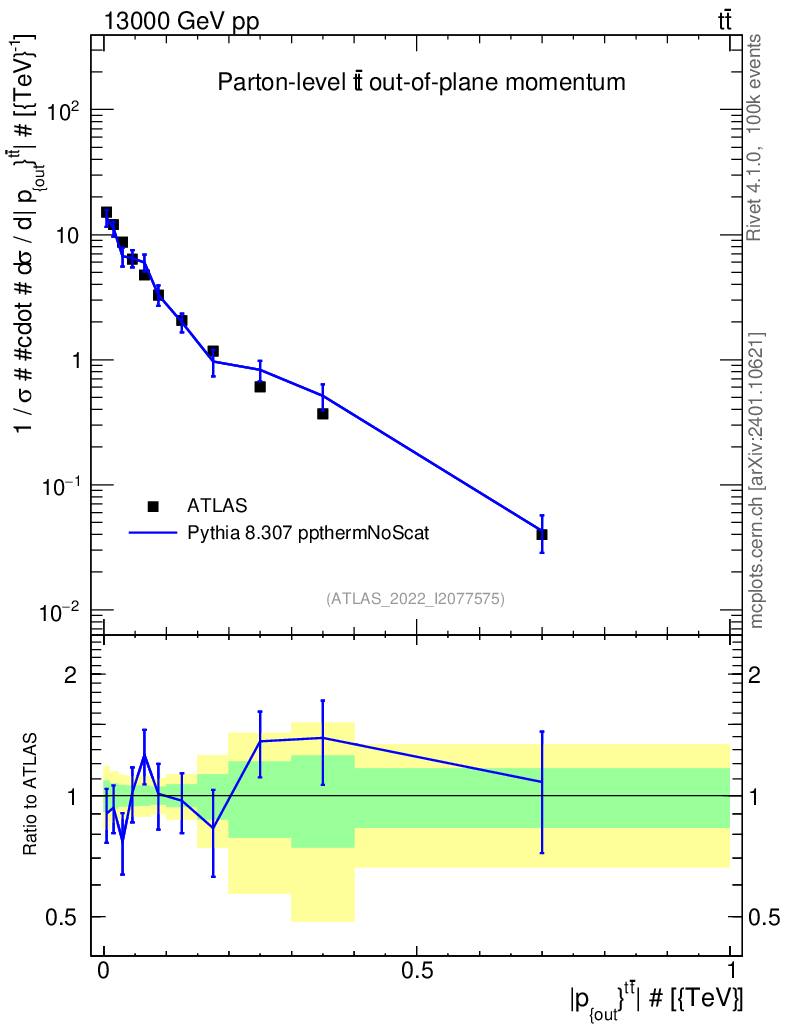 Lines: data, pythia8 8.307 ppthermNoScat |