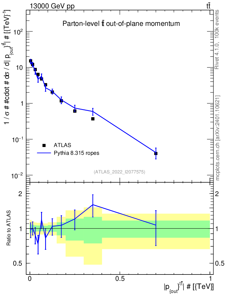 Lines: data, pythia8 8.315 ropes |