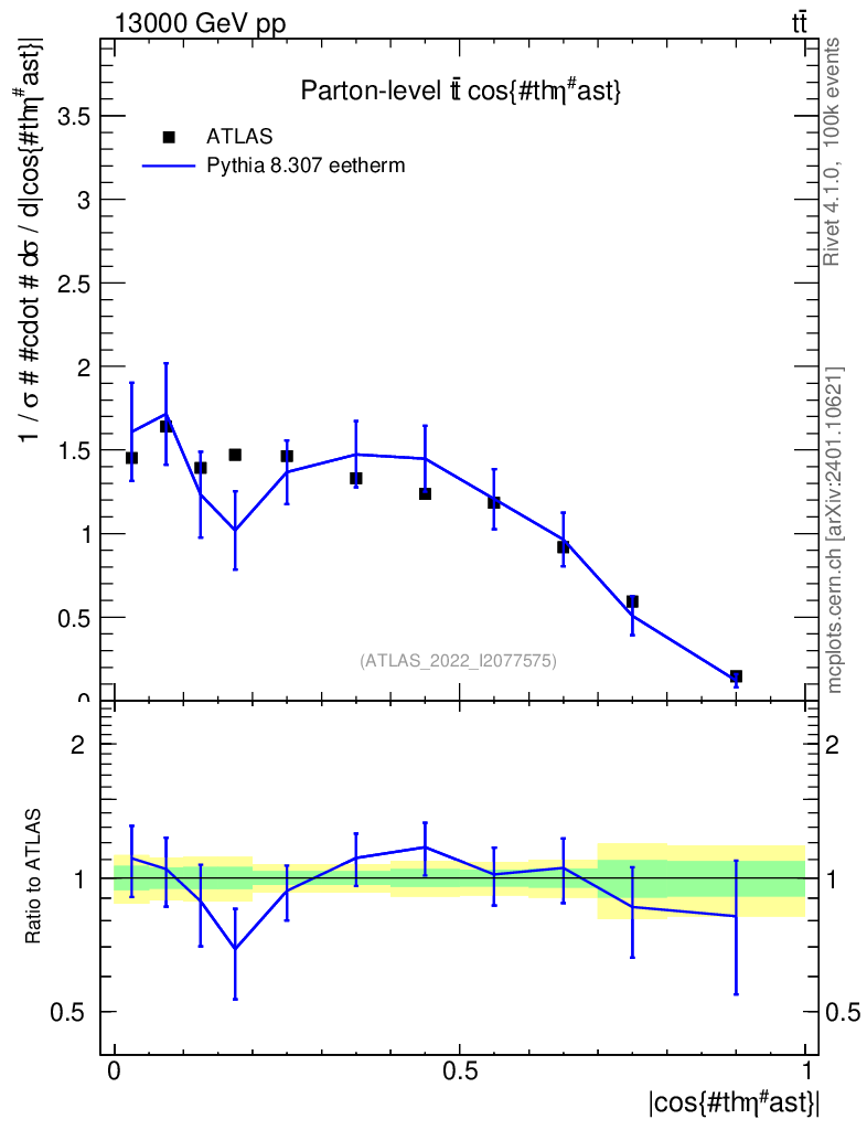 Lines: data, pythia8 8.307 eetherm |