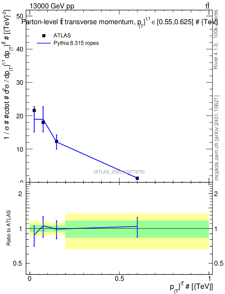 Lines: data, pythia8 8.315 ropes |