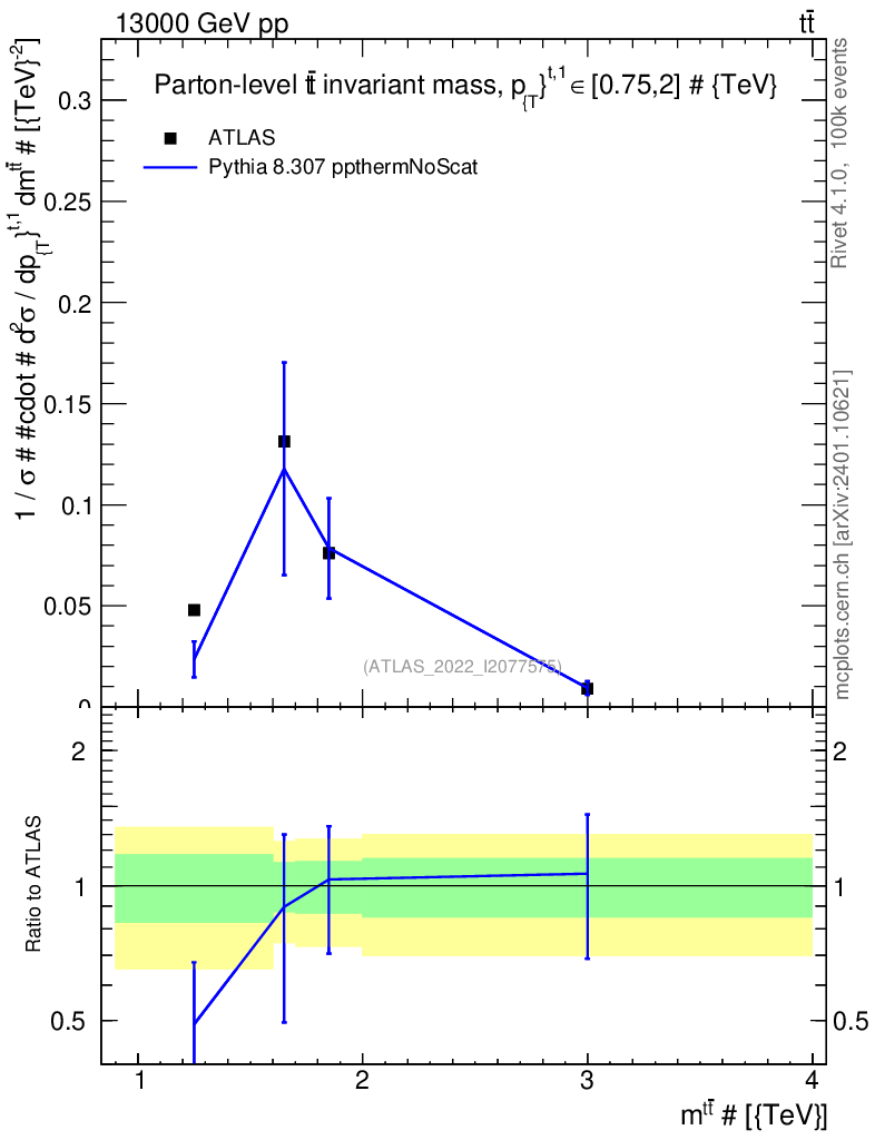 Lines: data, pythia8 8.307 ppthermNoScat |