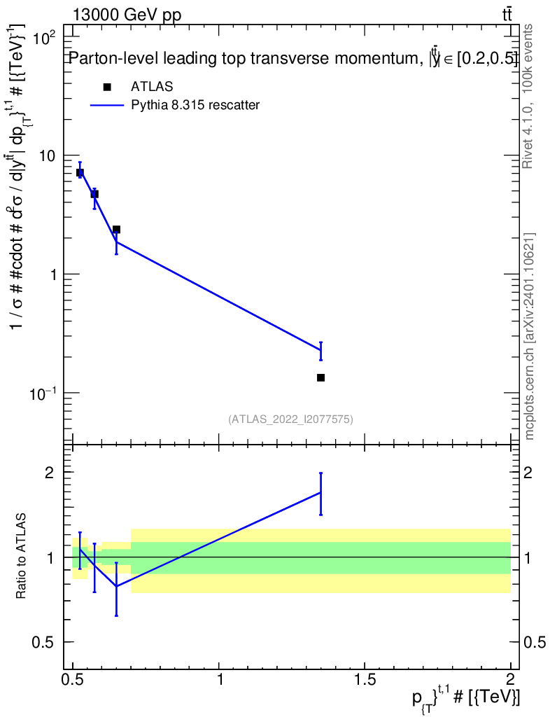Lines: data, pythia8 8.315 rescatter |