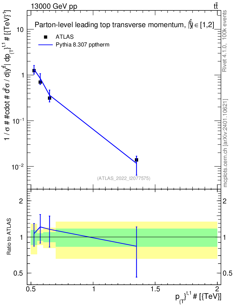 Lines: data, pythia8 8.307 pptherm |