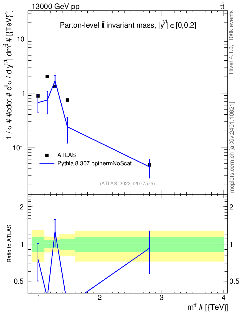 Lines: data, pythia8 8.307 ppthermNoScat |