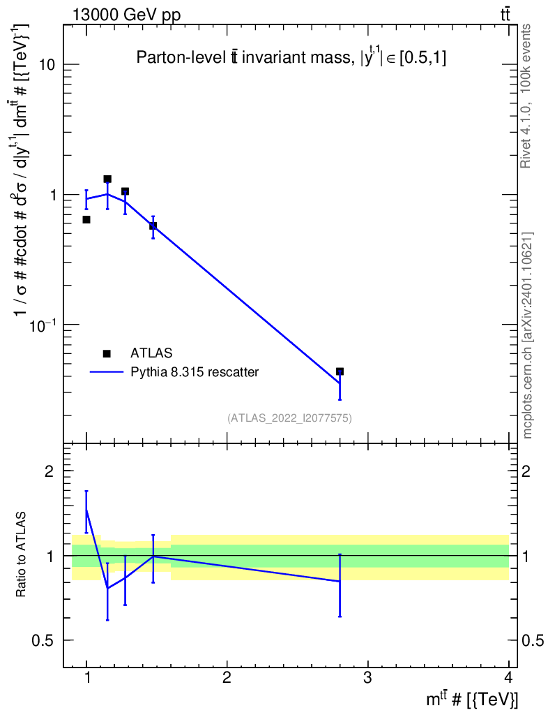 Lines: data, pythia8 8.315 rescatter |