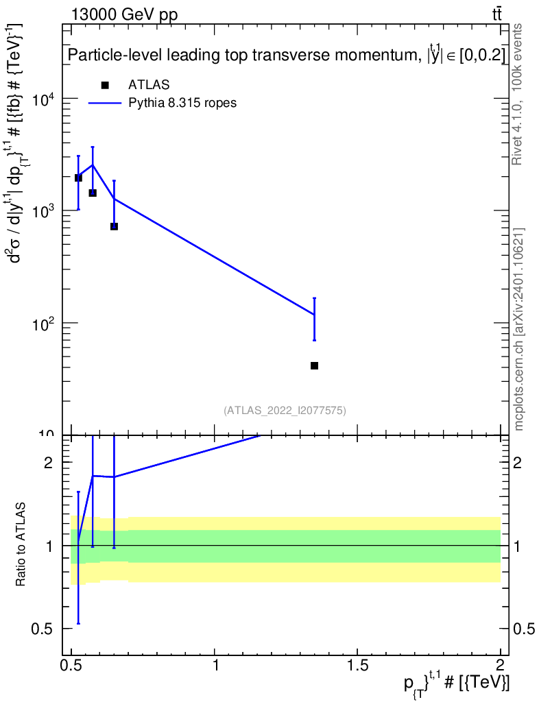 Lines: data, pythia8 8.315 ropes |