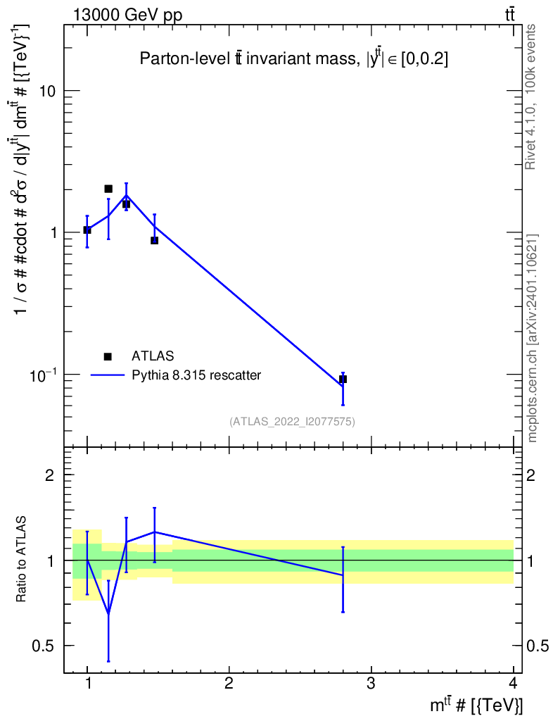 Lines: data, pythia8 8.315 rescatter |