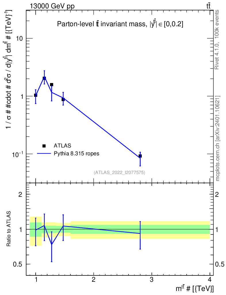 Lines: data, pythia8 8.315 ropes |