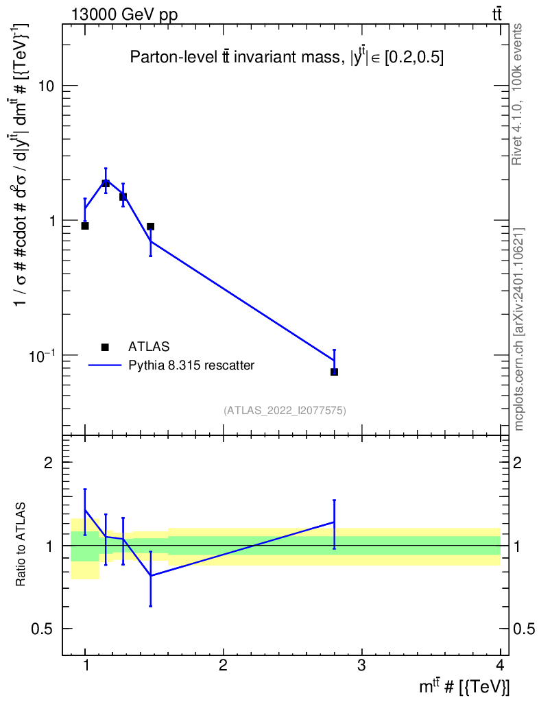 Lines: data, pythia8 8.315 rescatter |