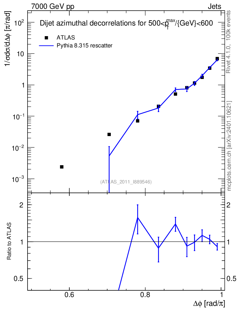 Lines: data, pythia8 8.315 rescatter |