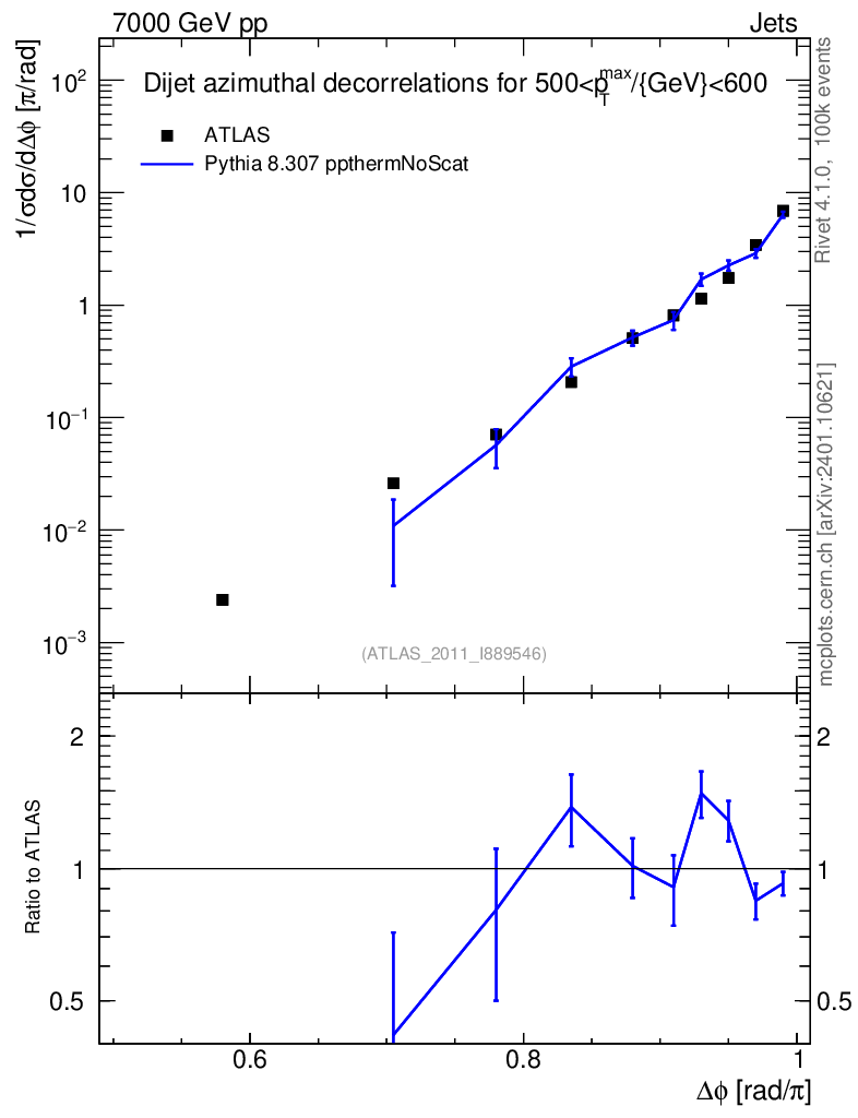 Lines: data, pythia8 8.307 ppthermNoScat |